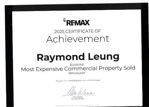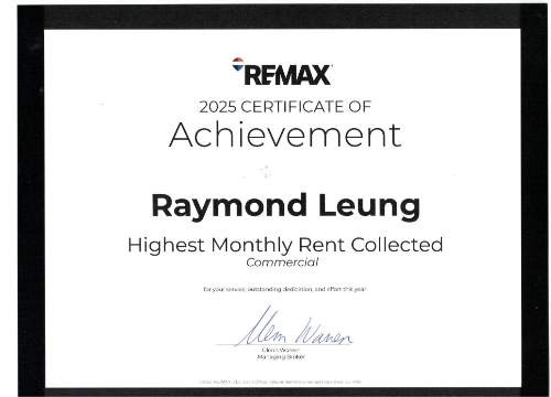 Raymond in Real EstateRaymond Leung is one of the most successful realtors in the Western Canada and is currently working with RE/MAX, the largest real estate company in North America. He has over 30 years experience in the real estate industry with focus in the commercial field. He has been the winner of numerous awards over his professional years for his prominent achievements. He continuously achieves the following achievements: Personal: